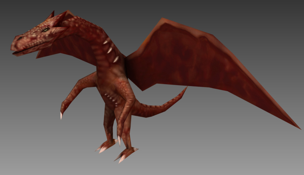 Looks a lot better than the skin I made, I see you have improved the mesh a bit too so it doesn't look so blocky. Two minor issues, first the mouth looks a bit like he is smiling. Second, I like the claws on the neck, however in the low-res pic (which is what it would look like when you are not zoomed way in in the game) they look a bit like gills.