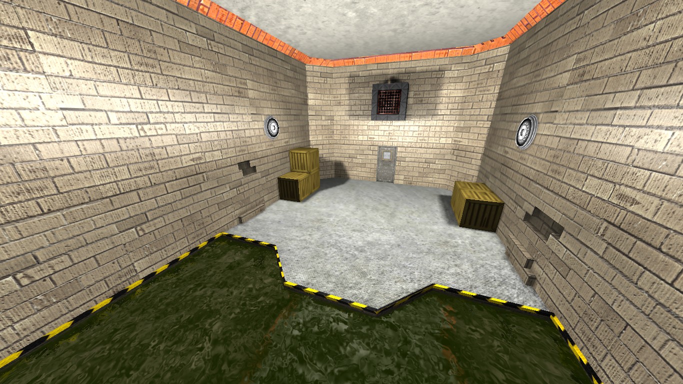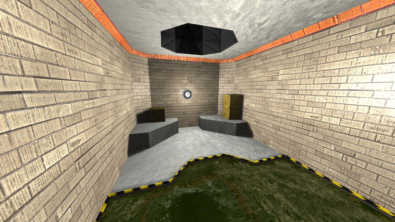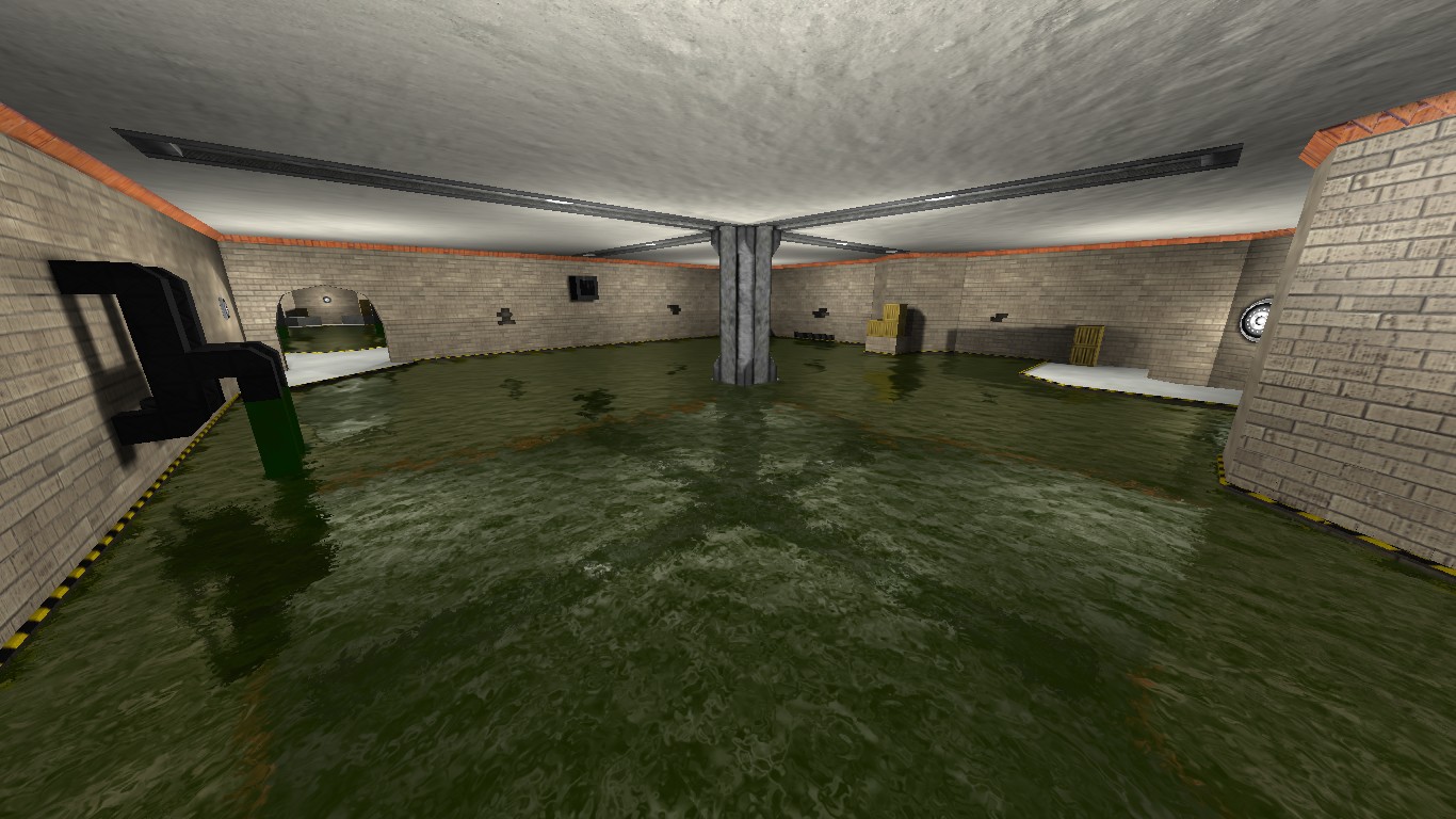 And about water. I know that the map takes a partial inspiration of deadly water from the map Test Chamber, but in my opinion you can normally add common water, you could try to add some slight blue or green tint and put out the "waterfog 0" (use a bit higher number), so you can even put some details on the floor. Swimming is anyway slower than wall-running, so this obstacle is not necessary in my opinion, sadly the engine has no partial HP loss material.