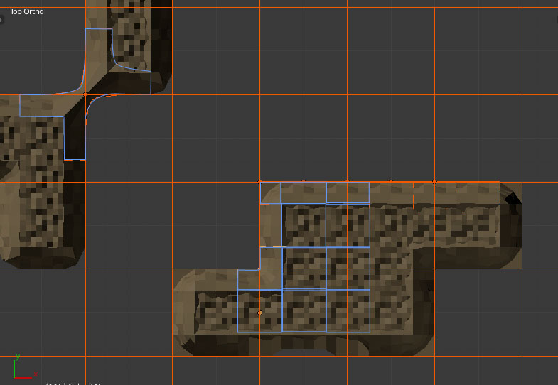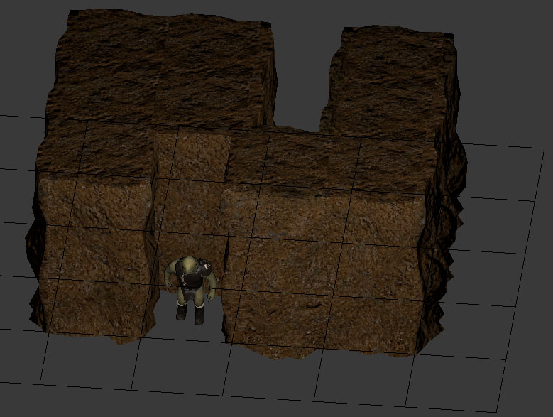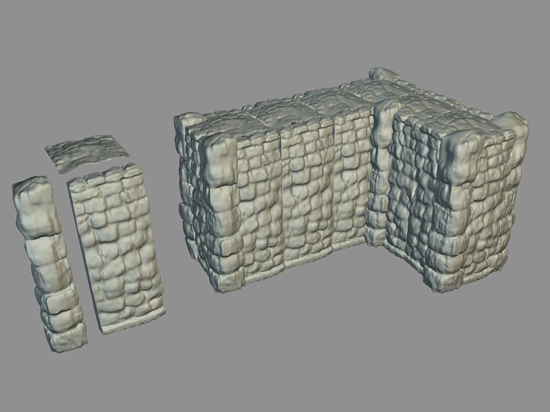 Variant 2 uses four models, a straight segment, inner and outer corners and the top. Each tile of this variant consists of four of these models (the red square in the screenshot would be one tile. Of course the size can be changed depending on the grid size. The size in the screenshot is 4m^2 and the orc, who has a pretty average dimensions, is standing in the middle of one tile).