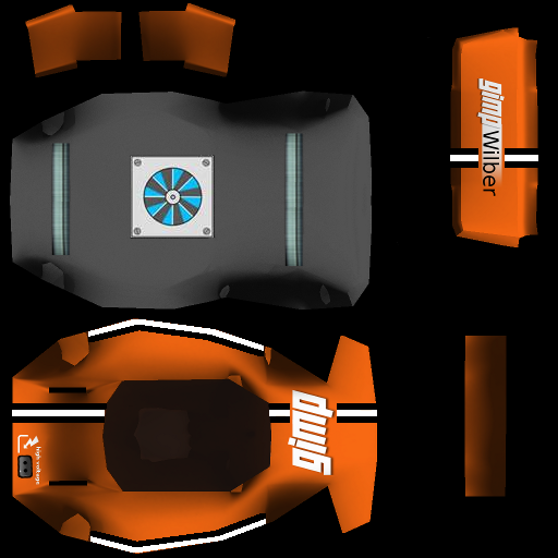 Here is my upgrade for the Wilber kart. I added a racing stripe over the body and spoiler, stripes along the sides and underbody details.