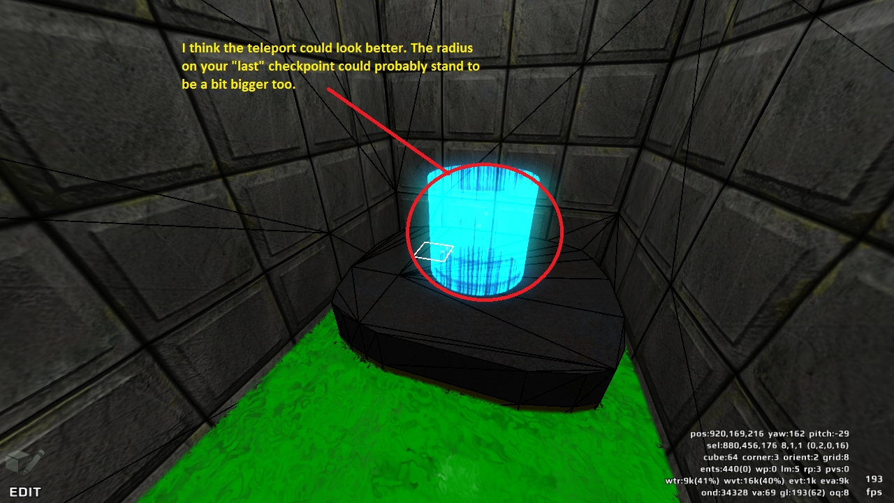 This map have a very compactly placed rooms (after typing /newmap i didn't increase map), nice particles and good gameplay (all can play here. For current configuration of map gameplay is better is this a possible). Also this a first map for time-trial where i use a lightfx . So i suggest you try it . ;)