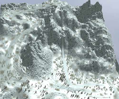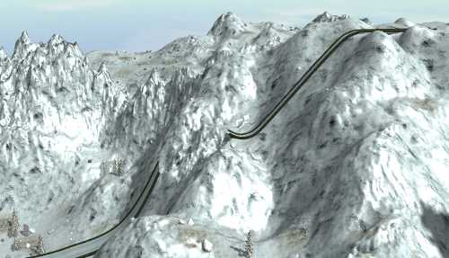 This would be a winter track with an unique stunt element: A long steep downwards slope—maybe as a bridge— which apruptly ends with a small ramp. After that ramp there is a long broad forwards road where you can land on. The rest of the track basically just returns to the ramp, of course.