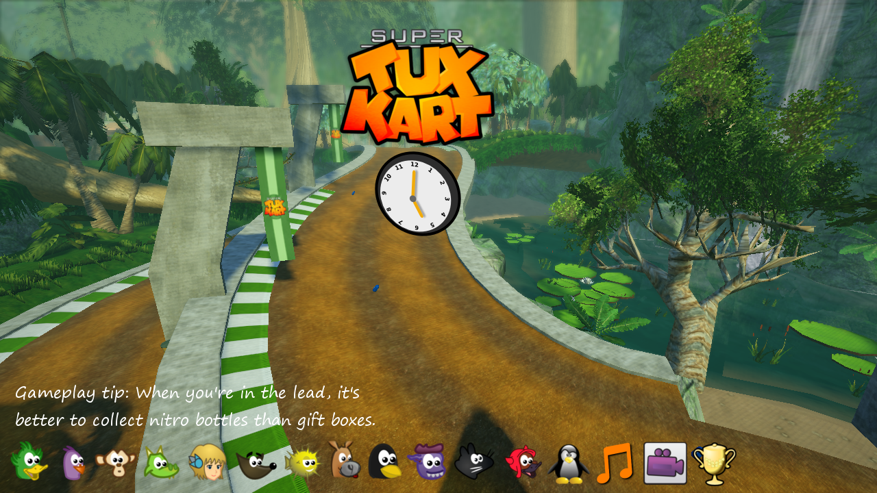 My proposed loading screen would have a screenshot of the track as a background (chosen randomly from a collection of screenshots), a gameplay tip or interesting fact about the current track (also chosen randomly from a collection of tips and facts), a loading bar consisting of the icons of the karts that are in the current race (in order of their starting positions), and and indicator for race type and difficulty. It would be somewhat similar to the loading screen that shows at startup.