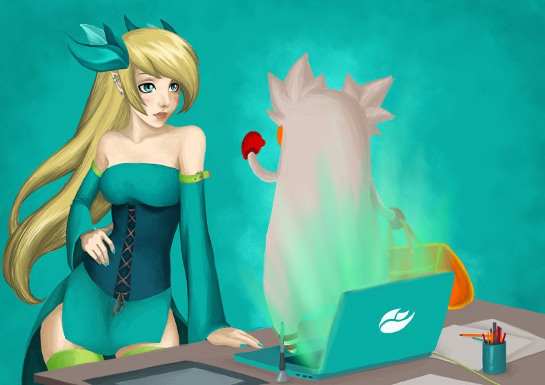 If i've put those earrings that we can see on the illustration, it's by respect for that person that i use to know, worked with me, and helped me to improve my art, especially about colors. And i confess: we're both perced :p