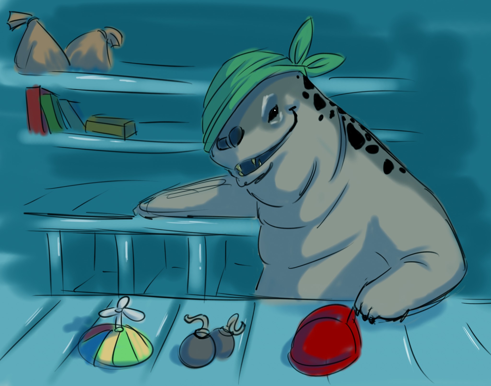 My quick rendition of the seal merchant idea that has been passed around. I wanted to make him look more menacing, and shady, since leopard-seals eat penguins.