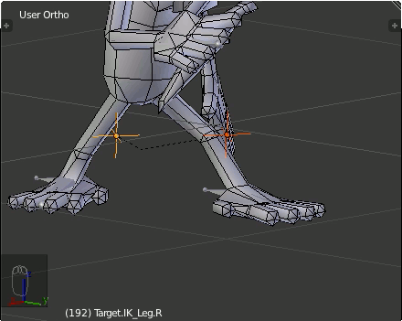 You'll notice that in the example, I'm going frame by frame using the right arrow key and that I reach the end of one anim set on frame 196 and start the bum spanking anim set on frame 197. On frame 197, the pole targets (the selected objects) are in their proper place but the knees are all messed up. One frame later though, the knees are rotated correctly and the pole targets haven't moved (besides the slight inherited movement from the parent object). This is where the funkiness was coming from in the earlier gif of Suzanne in-game.
