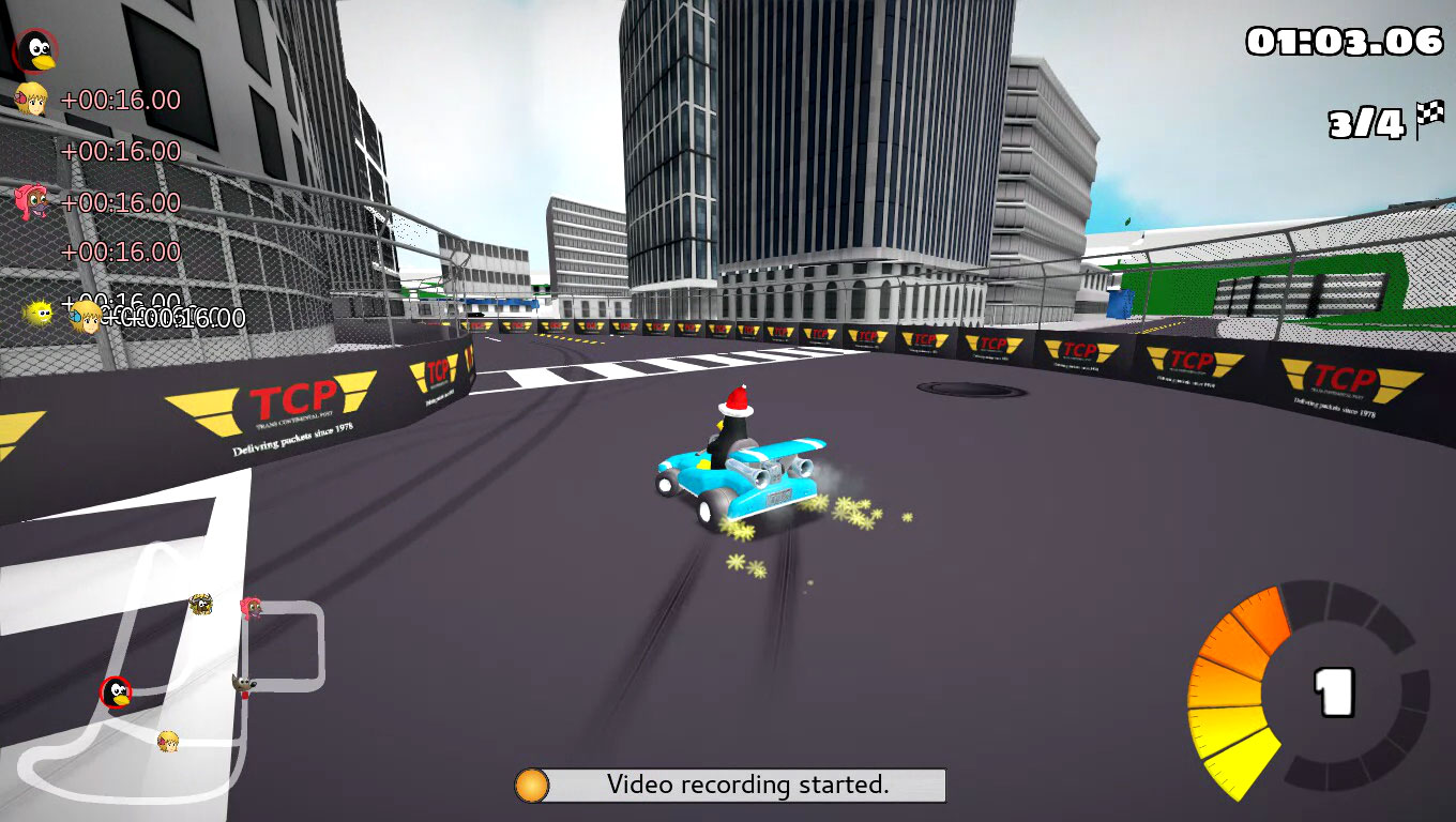 I recently discovered this pre-made City on BlendSwap (https://www.blendswap.com/blend/23834) and wanted to make a quick track from it. I saw this as an opportunity to test an idea that I have had: a track that randomly changes path each run.