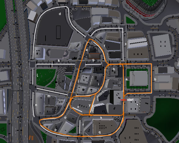 This video shows how some of the intersections are scripted to create a semi-random route through the city. This helps make the races more dynamic.