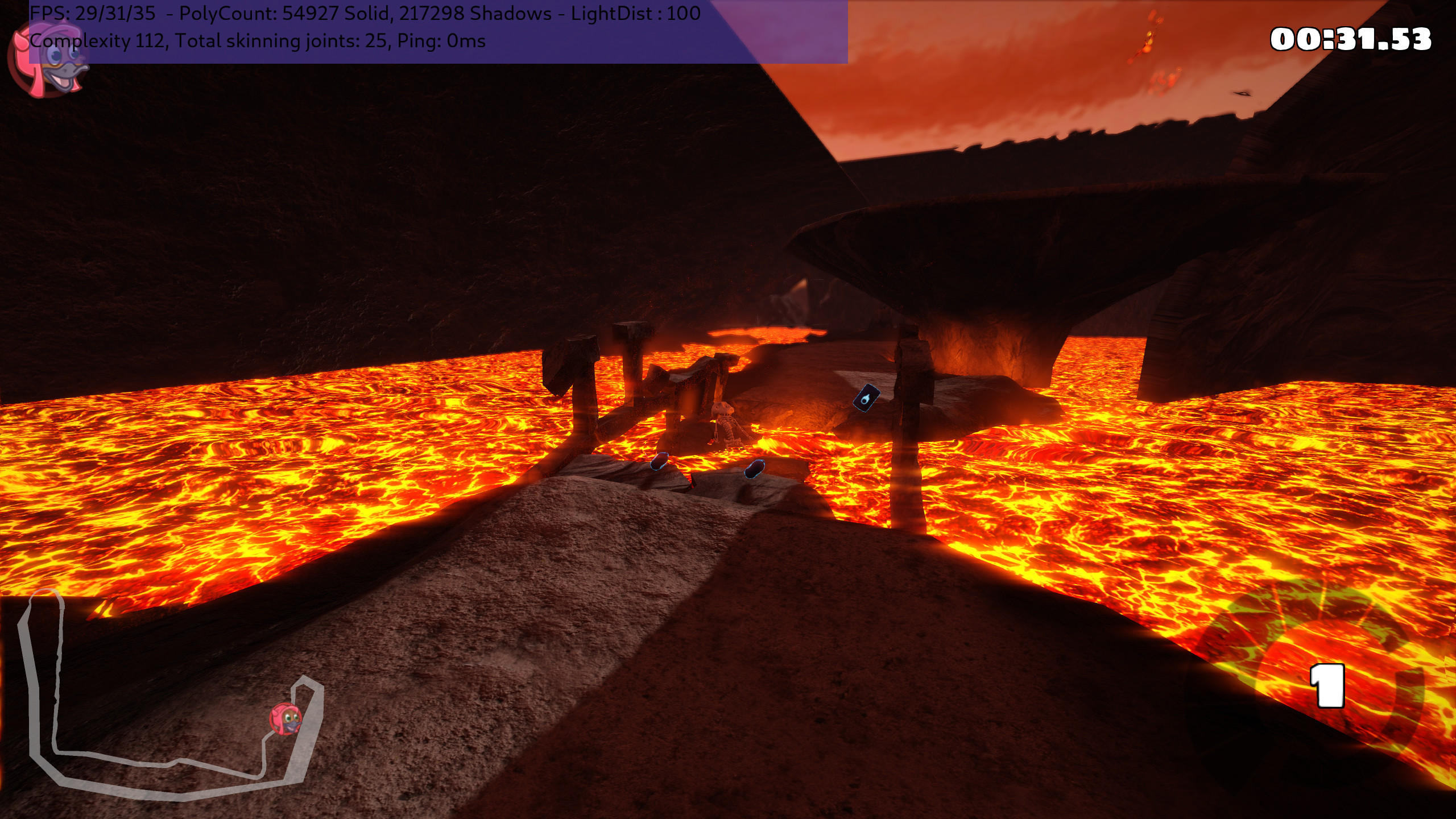 tempAnon093 {l Wrote}:- Broken road section: because it's uphill on a dark road with sun, there is very little visibility of the holes before you cross them so it's a bit unfair for the first few runs. Would it be possible to make the edges of the road glow brighter due to the lava? Maybe even have upwards shining lights under the holes?