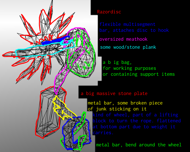 The basic idea is to assemble them out of raw parts, preferably stone/metal, that have been roughly around a medieval time. Some oversizing is probably not to avoid (like I did with the meathook), but gives the whole thing some surreal touch, what is nothing bad imo. That is where the W40K impression came from probably.