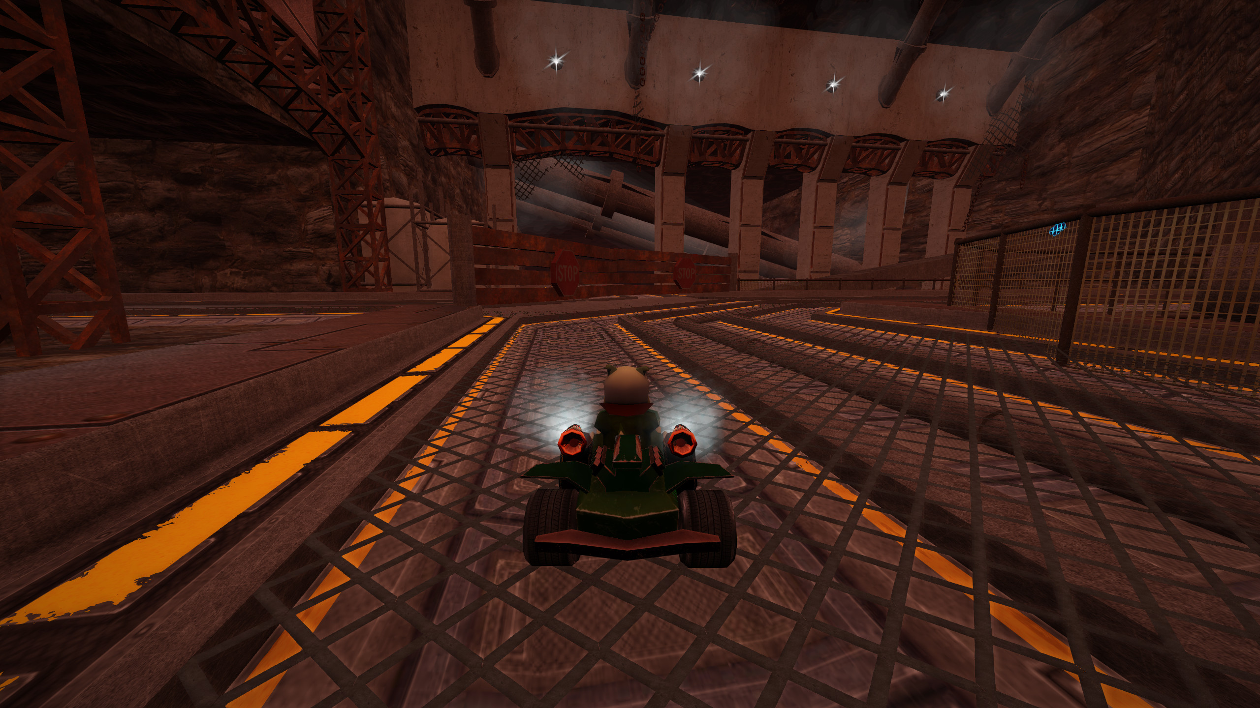 So far so good, although I'd make the factory darker. I think a mix between modern and apocalyptic would be nice with stone walls but also some lava tubes somewhere. The current factory just feels very light compared to the rest of the track.